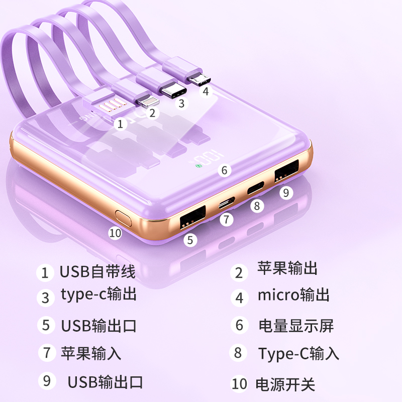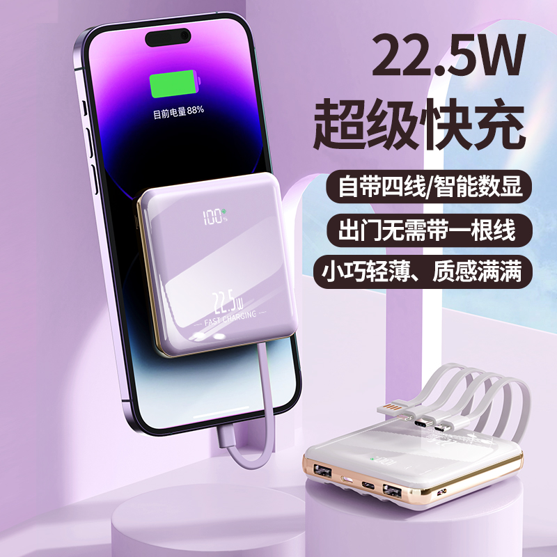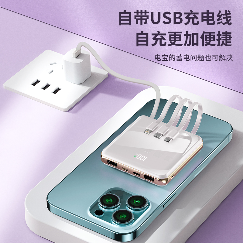 【国家3c认证充电宝】2025新款大容量20000毫安标识自带线超级快充小巧便携移动电源官方正品旗舰店可上飞机