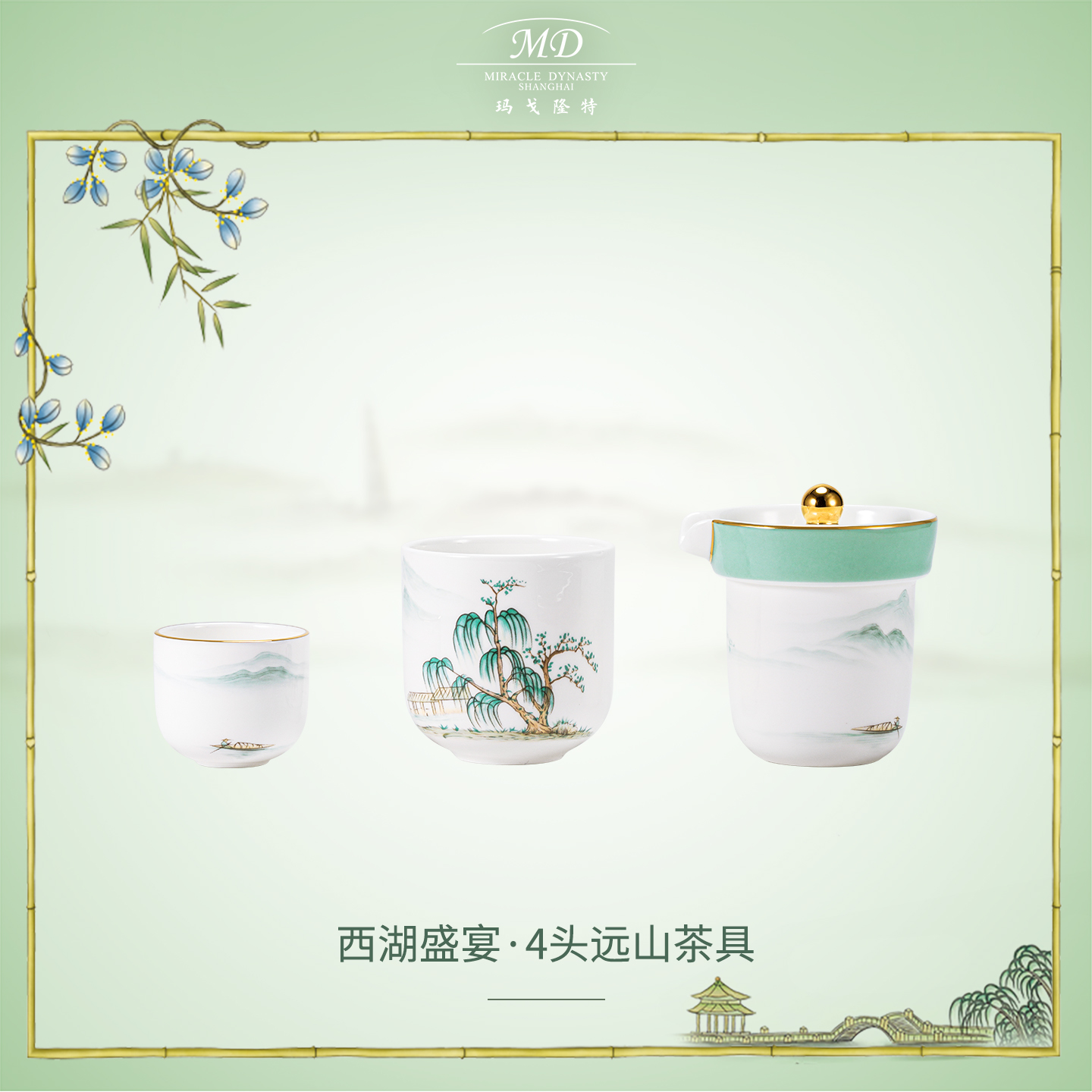 玛戈隆特西湖盛宴远山便携茶具套装新中式旅行功夫茶茶杯泡茶家用