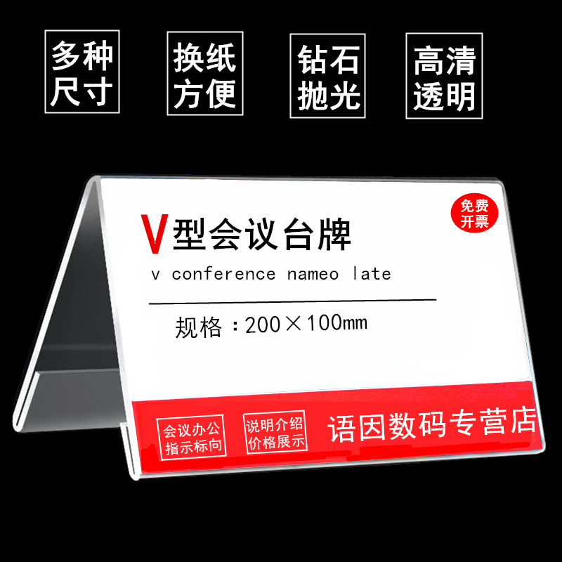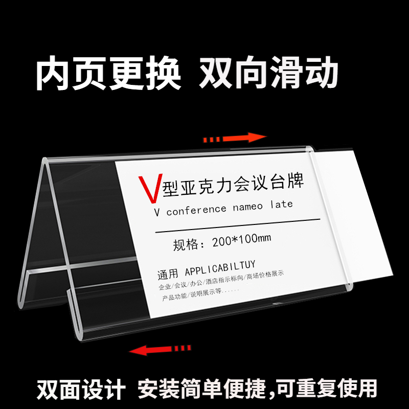三角会议牌展示牌评委席位牌10*20CM双面人名牌桌牌亚克力台卡台牌V型透明席卡座位牌会议牌学生姓名牌定制