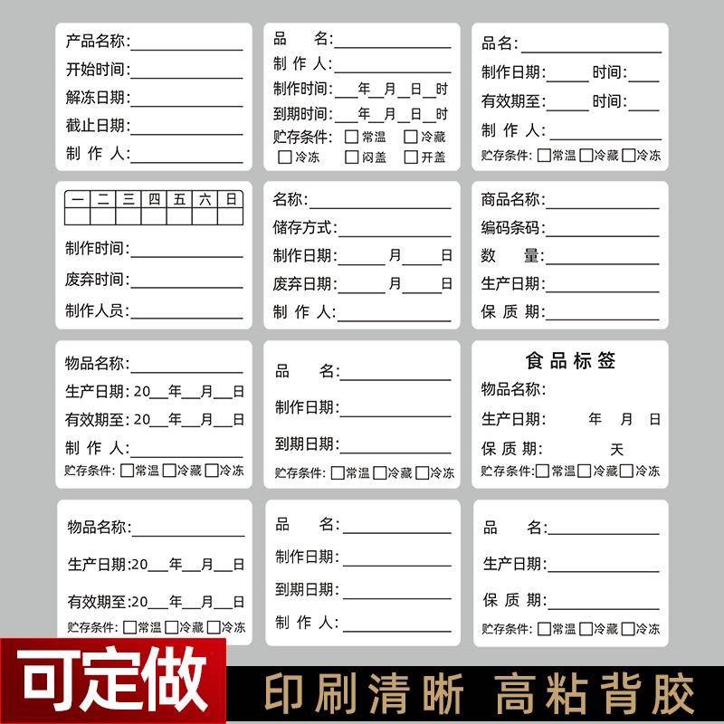 物品名称生产日期保质期标签品名效期表贴纸制作时间条不干胶定做