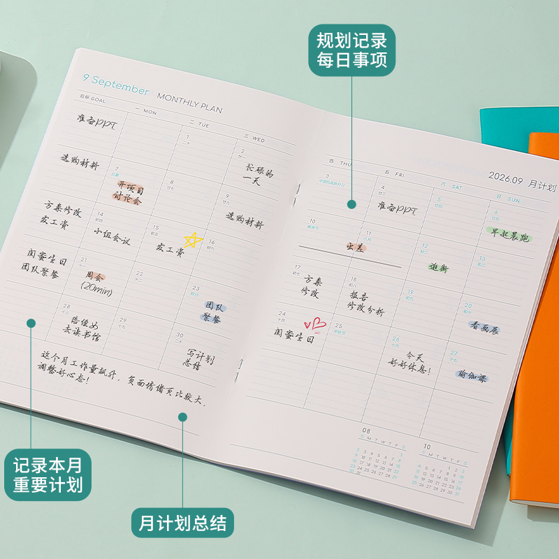 英力佳2026年新款月计划本日程本日历记事本工作小秘书日志本年历笔记本本子每日计划表时间管理效率手册定制