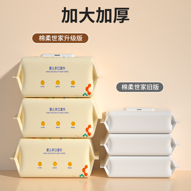 棉柔世家婴儿湿巾80抽大包珍珠纹加大加厚款新生儿手口母婴专用