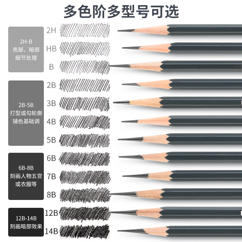 马可素描铅笔套装hb2b绘画素描铅笔美术生专用2比马克铅笔4b8b14b原木美术用品软中硬初学者速写画画工具