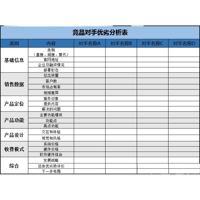 竞品调研分析表格实用性强快捷高效数据直观分析表优势略劣势 对手品牌竞争力爆款SWOT分析淘宝竞品监控模板
