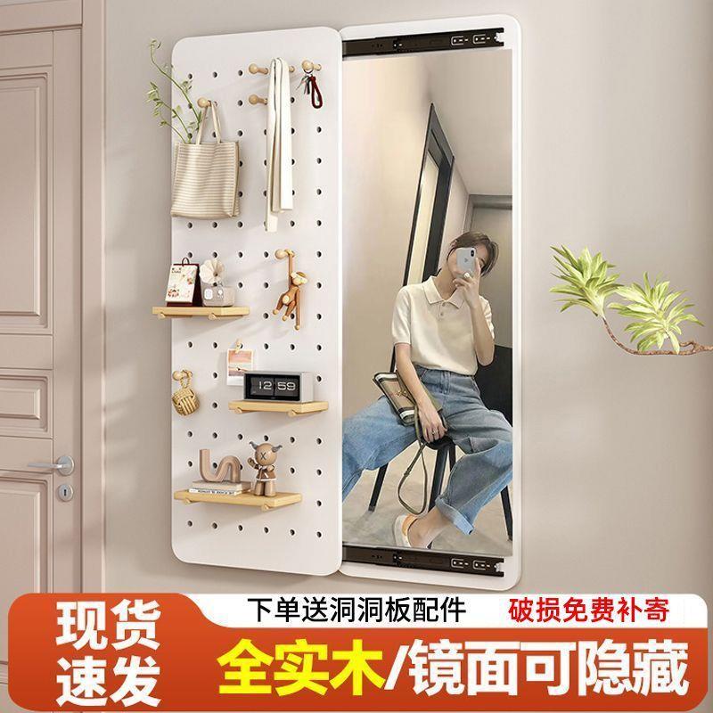 关全身镜推拉隐形门后置物AOW架收纳二合一洞挡壁挂玄遮洞板试衣镜