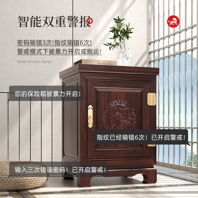 虎牌保险柜家用大容量新中式实木隐形智能床头柜一体柜防盗密码指纹带保险箱家庭2025年新款保管箱收纳