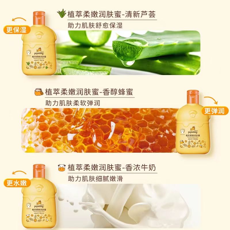 皮皮狗植萃柔嫩润肤蜜170g牛奶保湿蜂蜜滋润宝宝润肤乳身体乳液