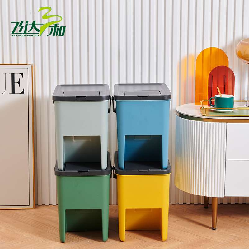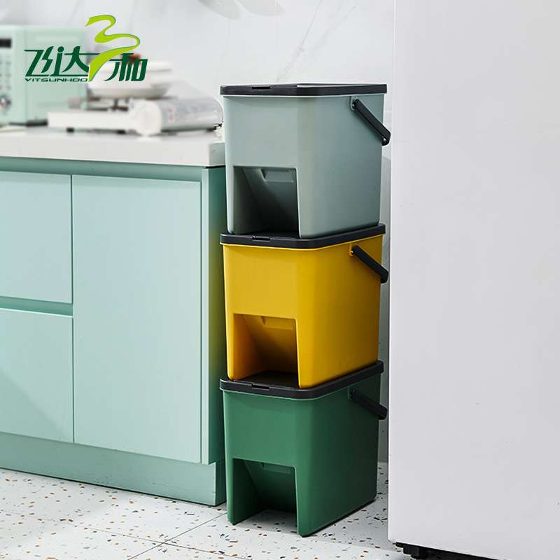厨房餐厅垃圾桶家用防异味厨余按压式分类 密封收纳