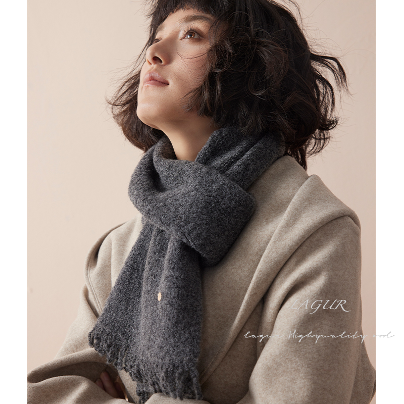 奶呼呼~天鹅质感miu系羊毛混纺围巾氛围感加厚保暖围脖纯色高级感