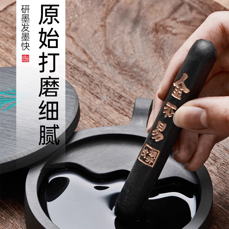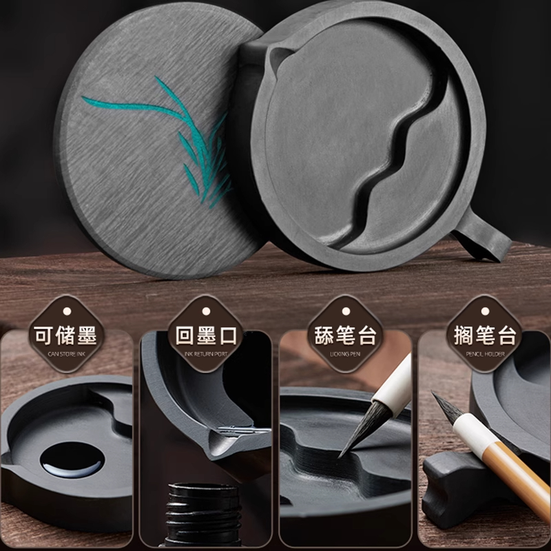 砚台书法专用带盖天然原石墨池墨砚初学者不干墨毛笔墨汁墨盒可研磨墨高档墨碟墨盘国画砚池文房四宝书法用品