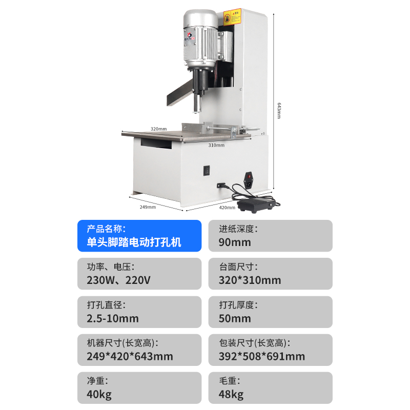 新款单头脚踏电动吊牌打孔机重型纸板上升式冲孔机财务打孔装订机打洞器名片钻孔机活页菜单凭证打孔器圆孔