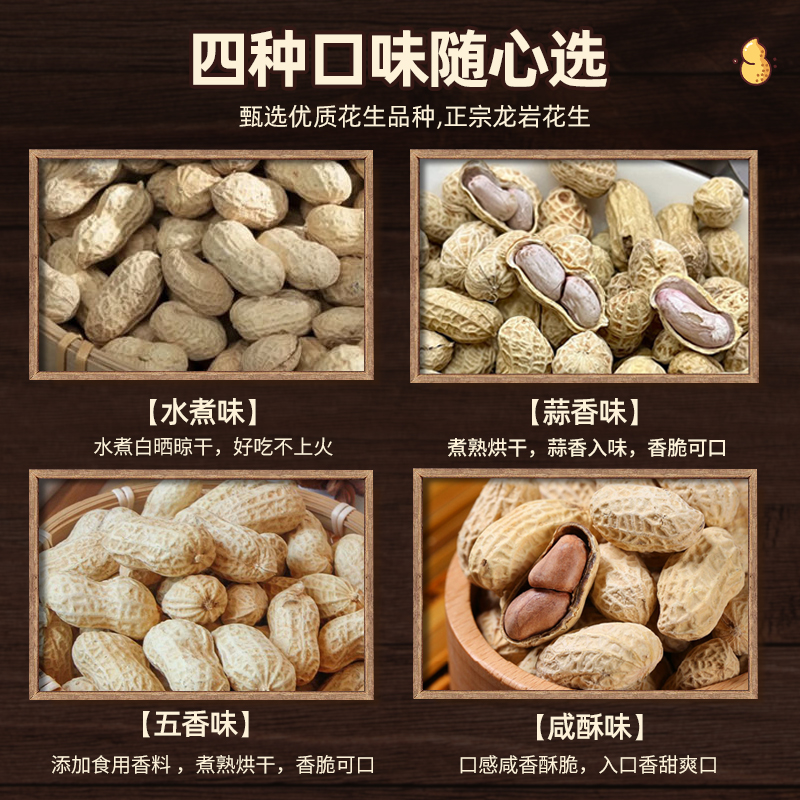 蒜香花生炒熟带壳五香原味喜花生米水煮白晒龙岩花生炒货零食结婚