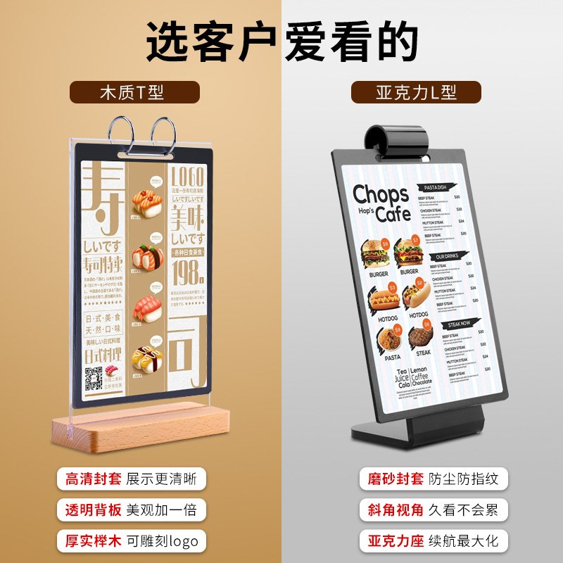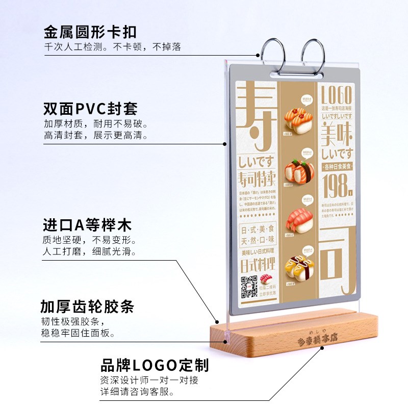 翻页台牌aA4桌牌木质底座台签点餐牌双面展示牌台卡架a5桌面立牌