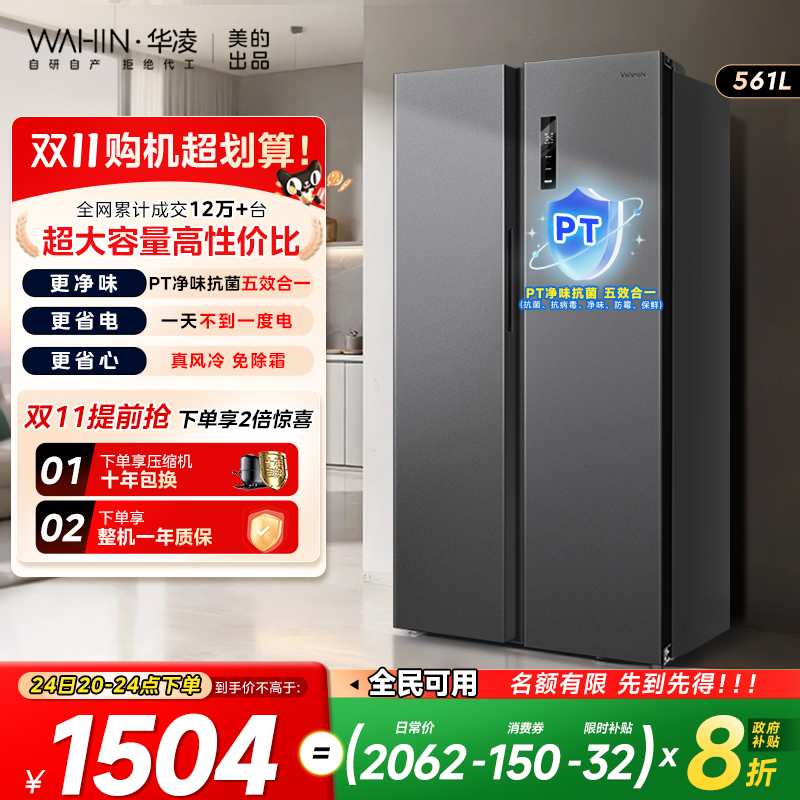 美的华凌589对开双开门冰箱风冷无霜大容量家用变频以旧换新补贴