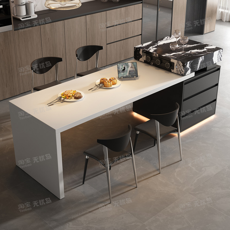岛台餐桌一体家用可伸缩意式现代岩板导台厨房高级轻奢倒台一体桌
