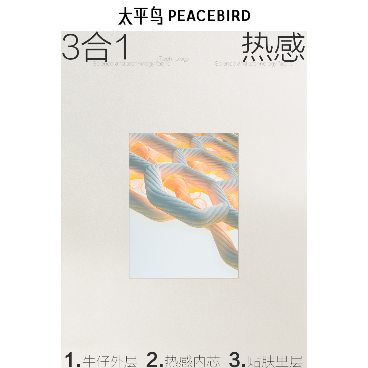太平鸟男装牛仔裤冬休闲直筒热感保暖黑色品质牛仔长裤潮