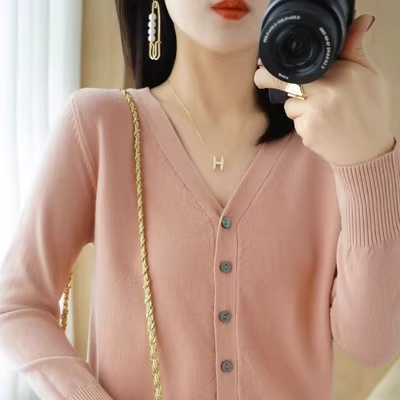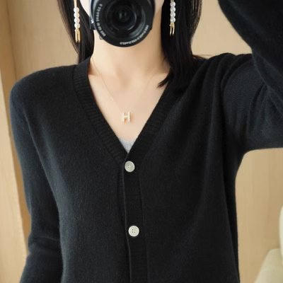 新款羊毛开衫外套女针织打底衫V领2025年春季羊绒外搭短款毛衣女