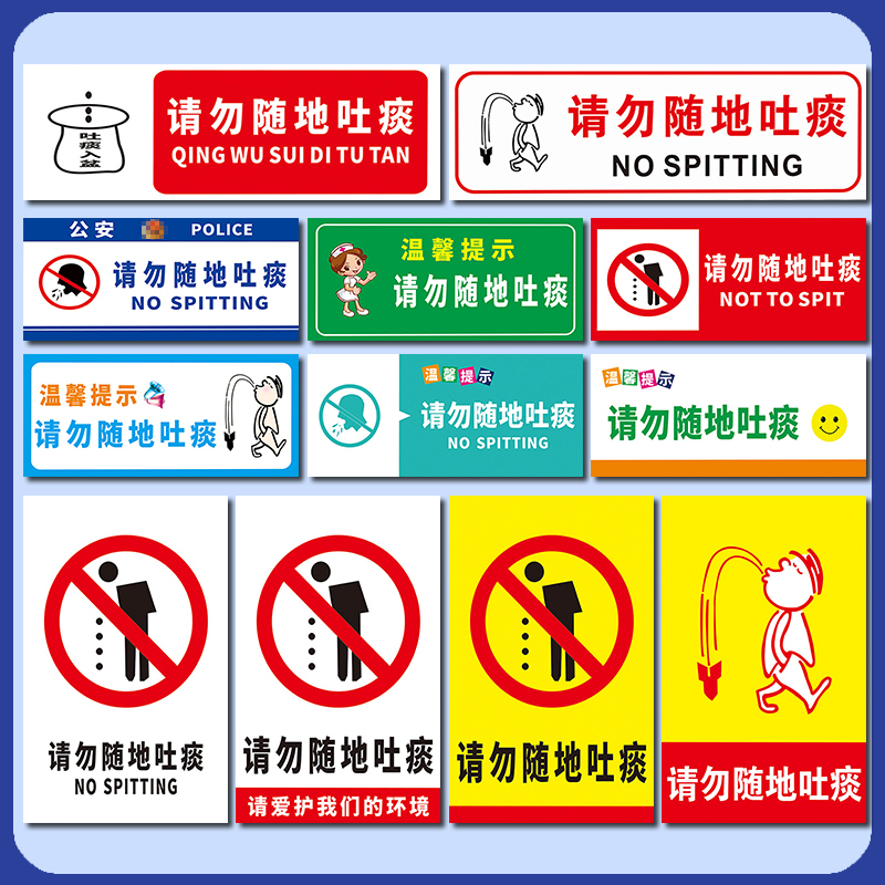 请勿随地吐痰温馨提示牌保持环境卫生人人有责管理标语挂图墙贴定制pvc塑料板铝板反光膜告示警示标识标志牌