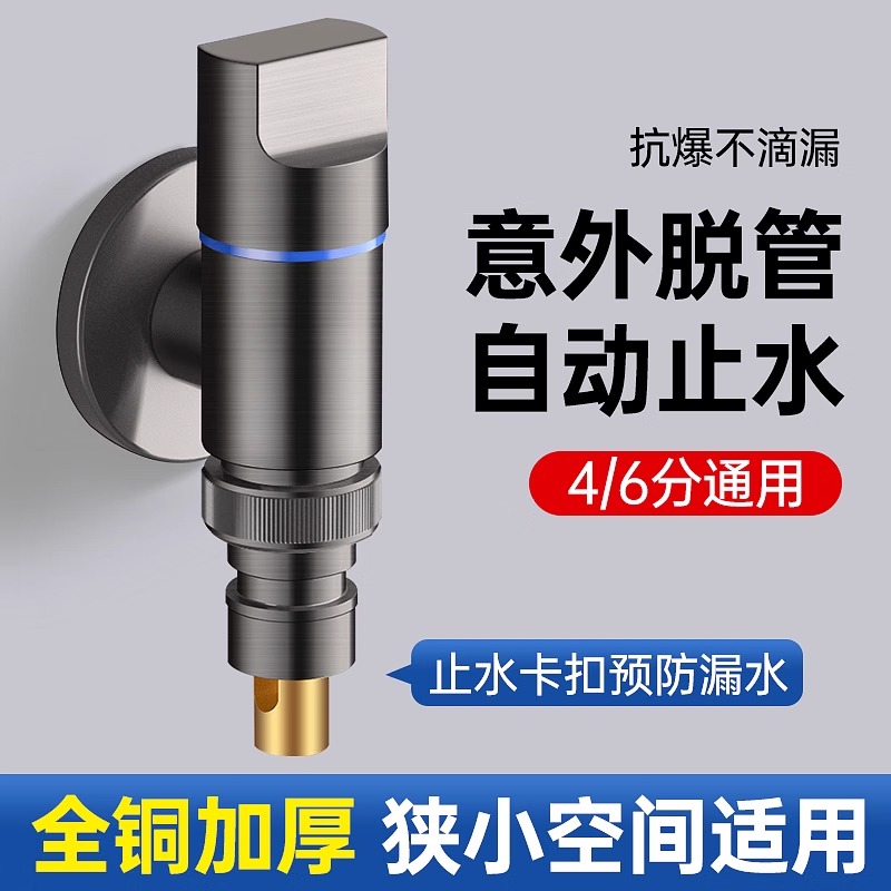 全铜角阀洗衣机水龙头自动止水阀专用卡扣式接头滚筒自动46分通用