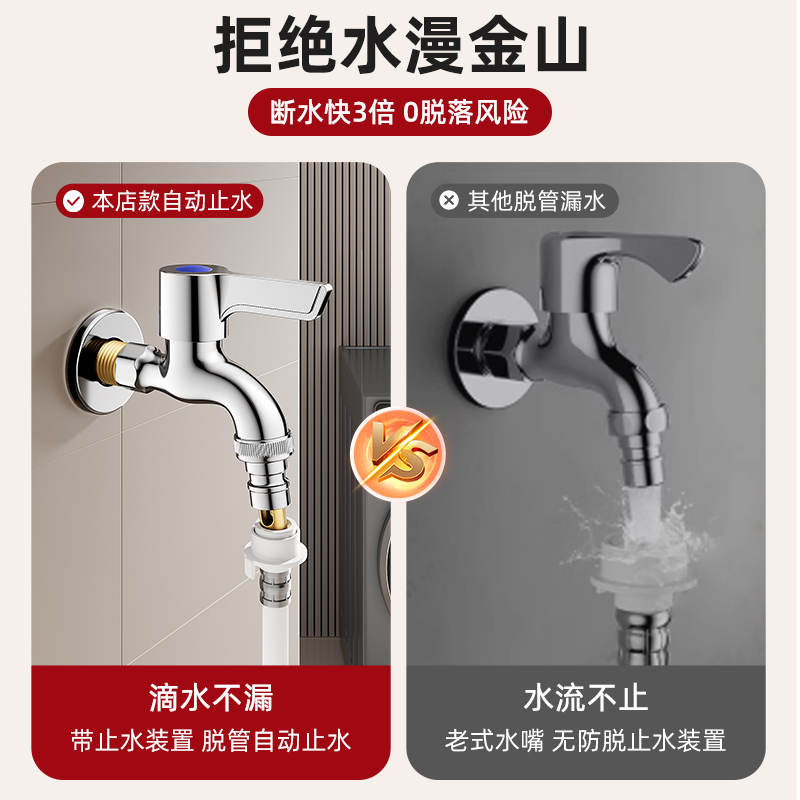 全铜洗衣机水龙头专用自动止水阀加长4分水嘴接头家用水管卡扣
