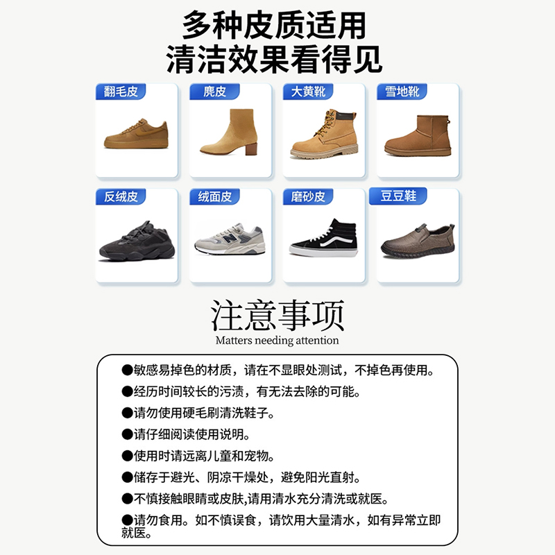 翻毛皮鞋清洁护理剂皮麂皮勃肯鞋翻新补色洗反绒皮专用大黄靴鞋子