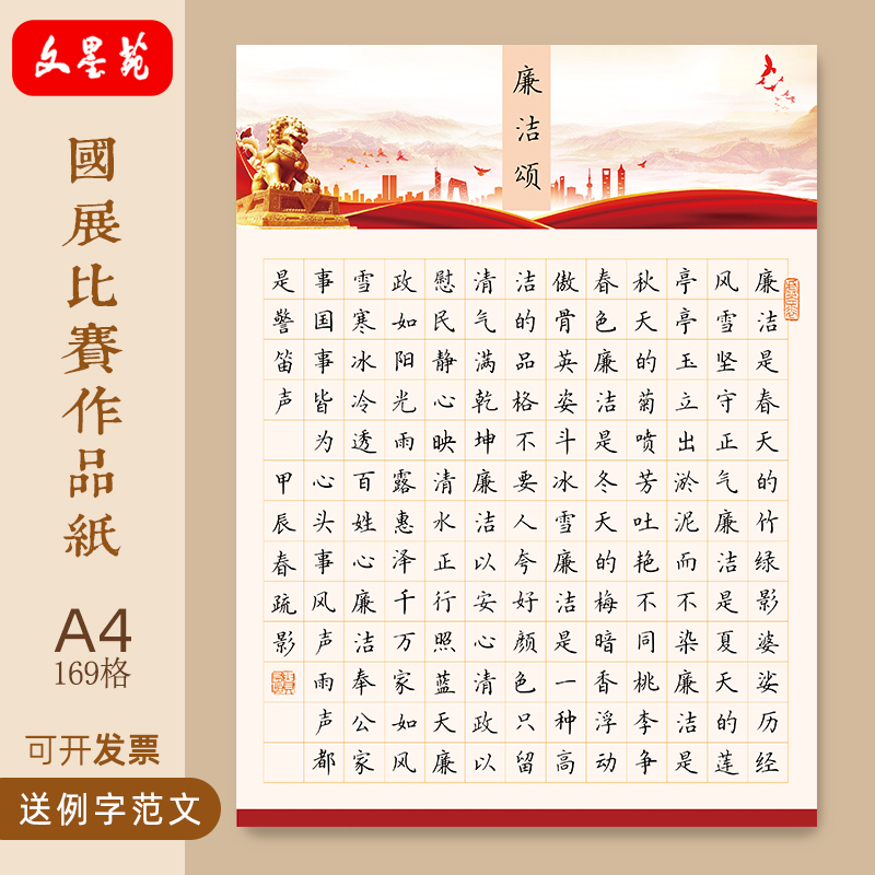 文墨苑A4硬笔书法作品纸学生行路难二首96格比赛专用120g加厚竹纸古风创作成人中性笔秀丽笔书写