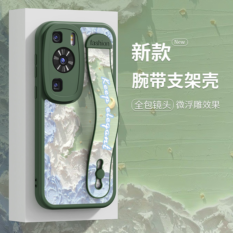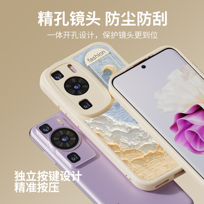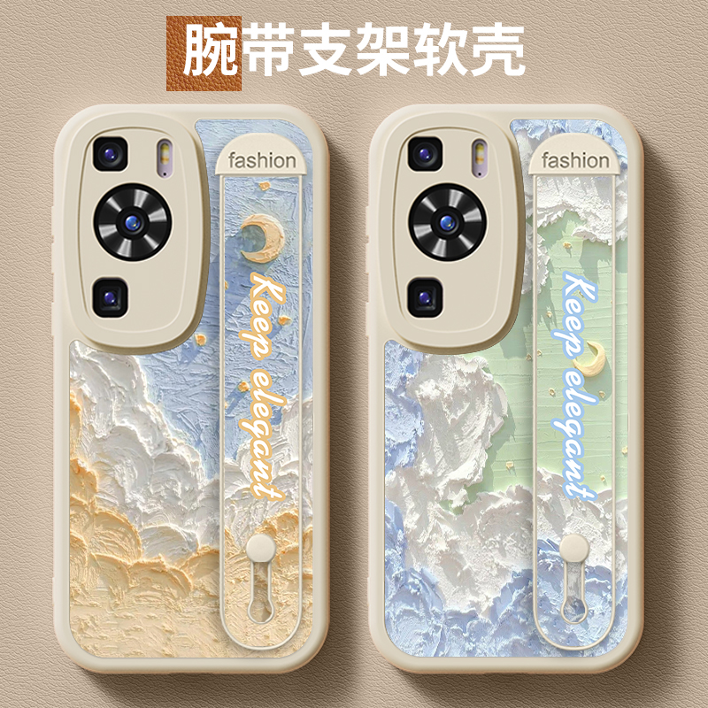 油画海浪适用于华为p60手机壳nova11新款p70pura小羊皮p50pro防摔p30镜头全包nova12女nova10腕带荣耀90/80软