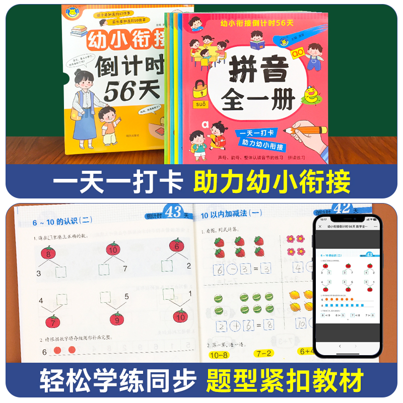 幼小衔接教材全套一日一练语文数学拼音专项练习册幼儿园大班学前习题每日一练为一年级做准备加减法口算题卡