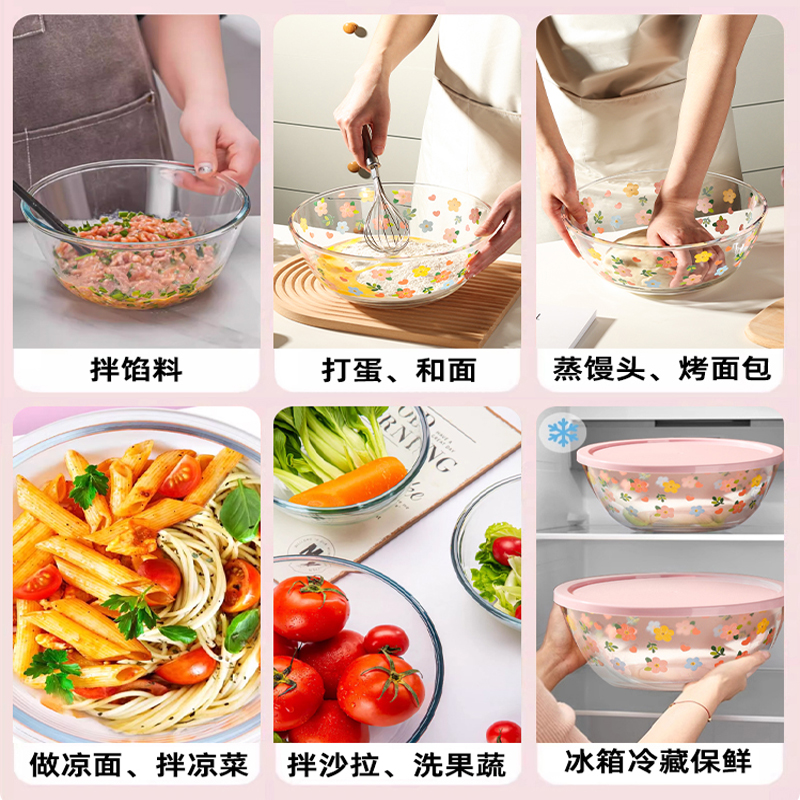 透明玻璃碗耐高温家用烘焙玻璃盆和面蛋糕打蛋沙拉泡面碗大号汤碗