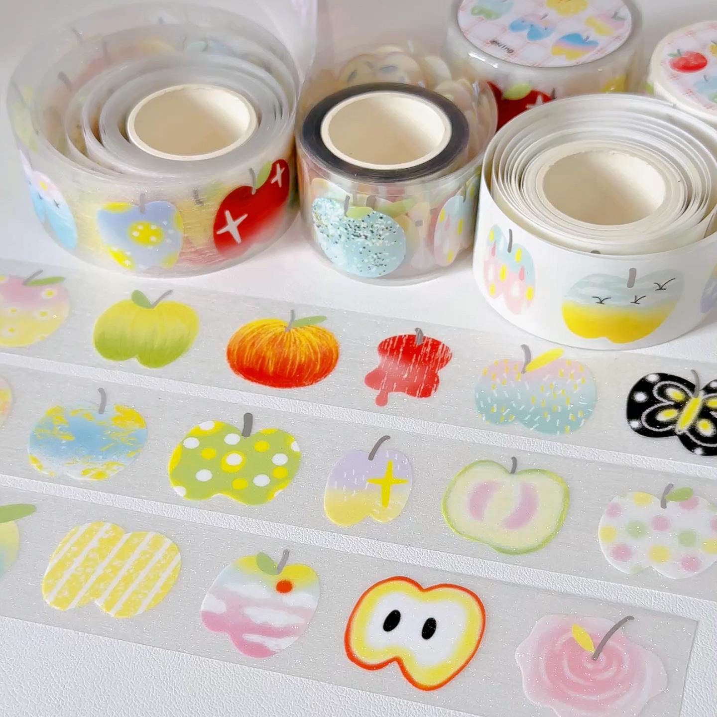 N1ng酱【一卷苹果】手帐和纸胶带pet双透拉丝苹果点缀拉条