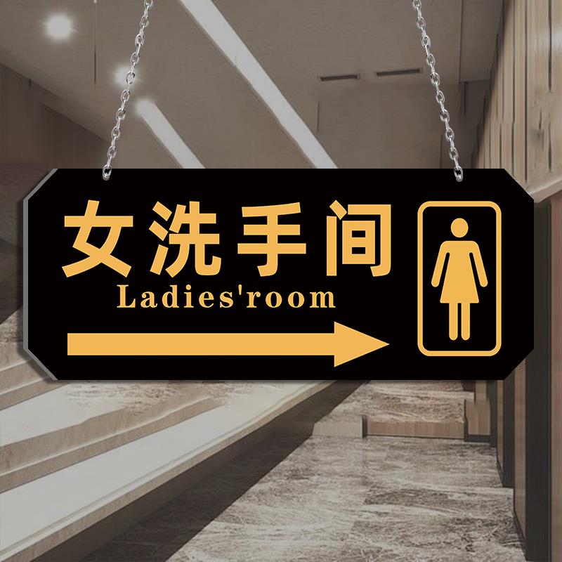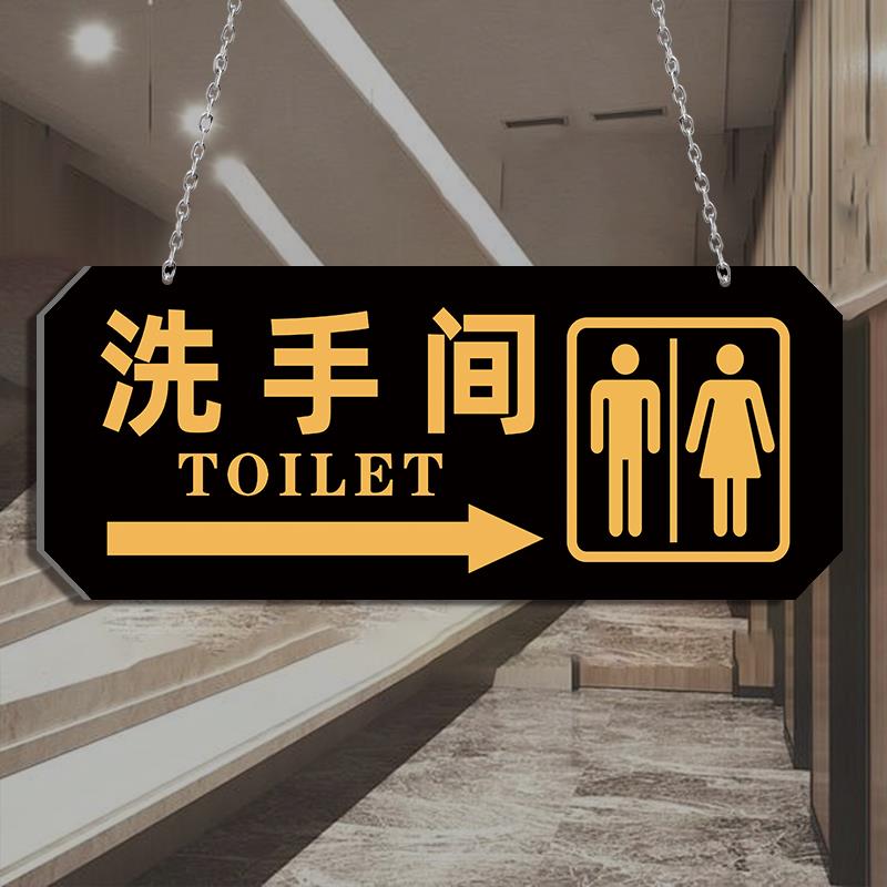 夜光洗手间指示牌导向牌卫生间指引牌标识牌吊牌导向牌厕所引导牌悬挂牌男女洗手间指示牌双面亚克力门牌定制