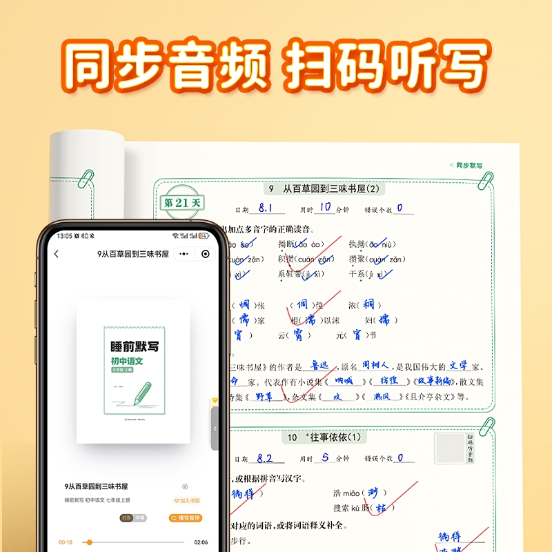 【易蓓】初中语文睡前默写同步课本字词古诗文言文注释知识点文学常识考点大全七八九年级初一二三课堂预复习教辅资料练习册·