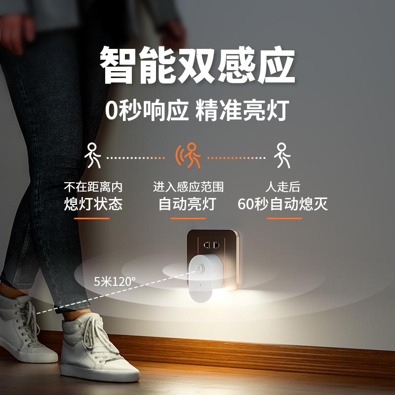 夜间人体自动感应灯人来即亮楼道卫生间专用插电式老人起夜小夜灯