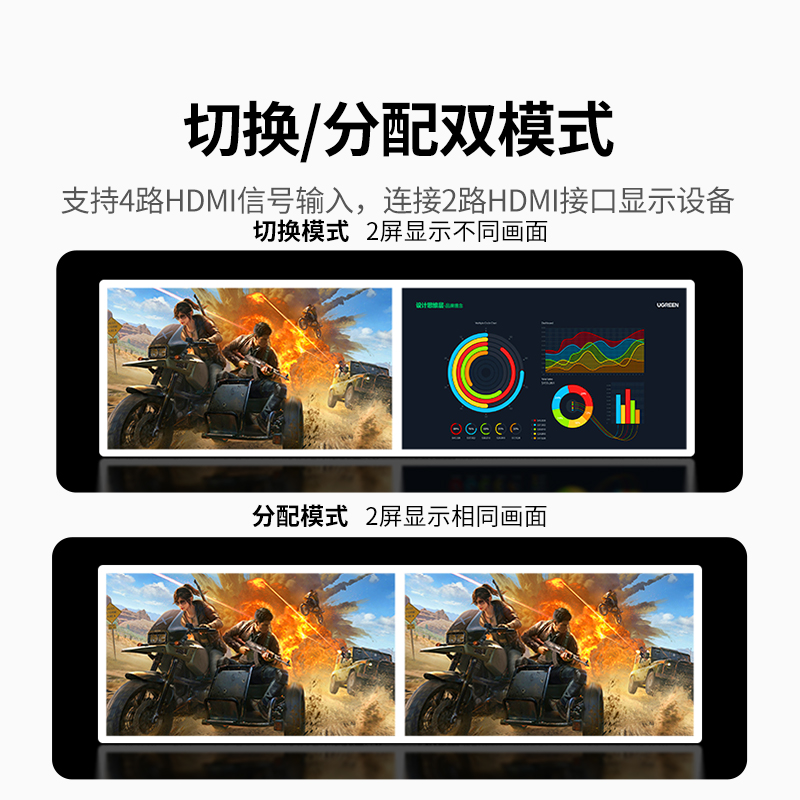 绿联 hdmi2.1版矩阵4进2出8K高清视频电脑主机电视音频分离扩展分屏分配器显示器画面共享分线分割转换切换器