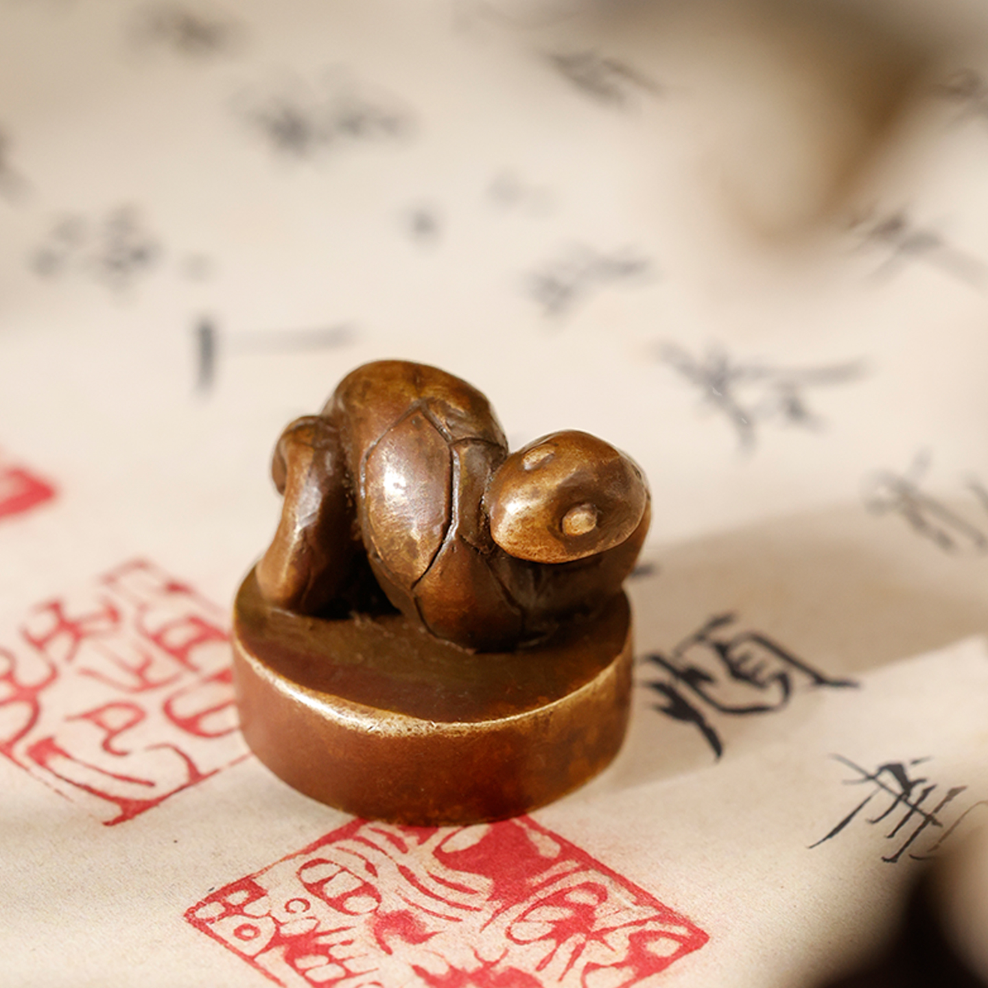 青铜器蛇钮大吉印镇尺 传统失蜡法仿古铜器 高端印章 镇纸手把件书法创意小摆件实心镇纸 文房四宝