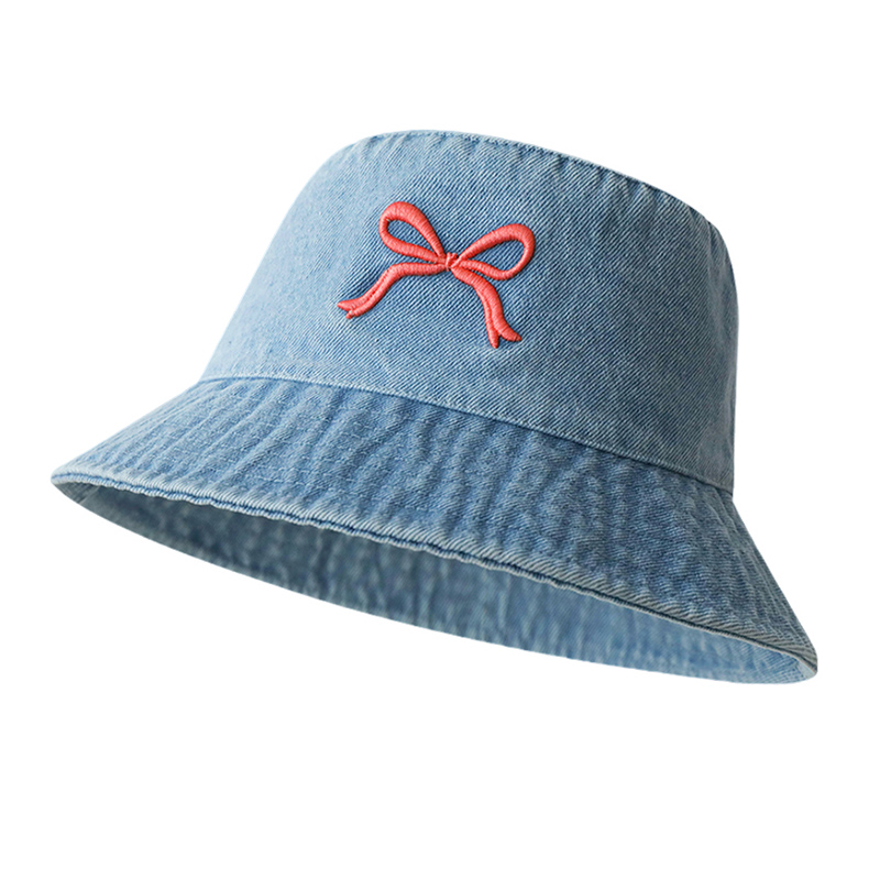 渔夫帽女款2024新款蝴蝶结牛仔夏季防晒遮阳帽洋气的帽子卷边圆脸