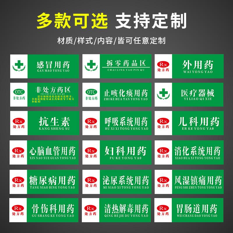 清热解毒用药药房药店分类分区标识牌全套标签区域牌门诊医院诊所药品分区域分组标识牌GSP认证贴纸标牌定制
