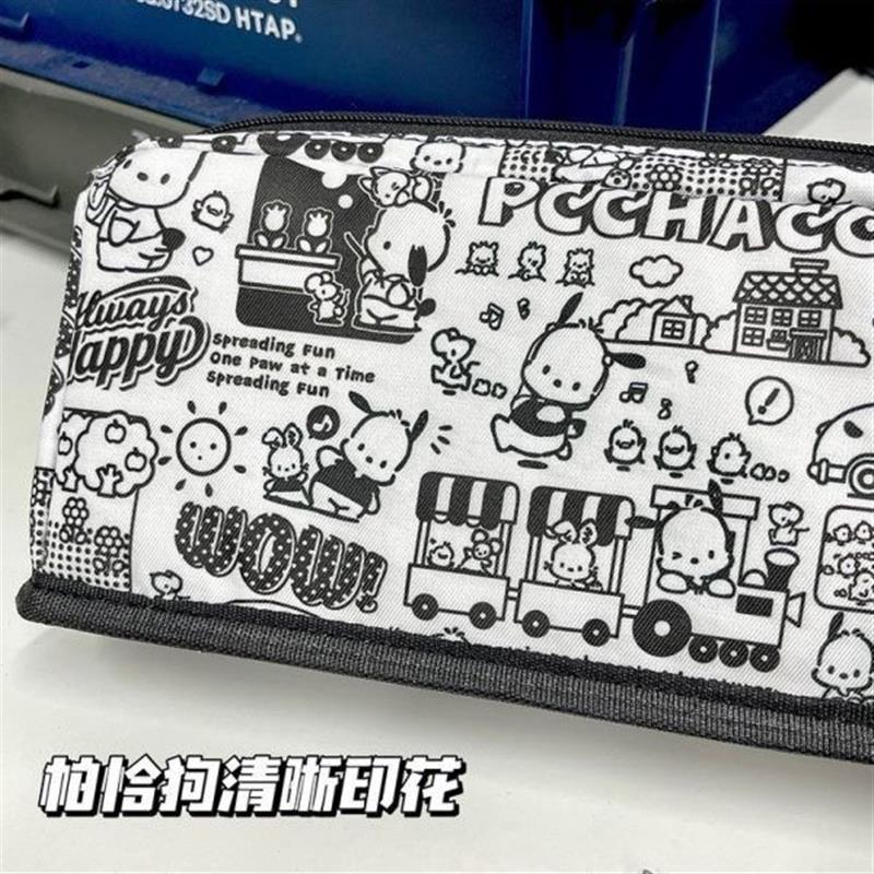 帕恰狗笔袋ins翻折式大容量黑白简约初高中学生可爱文具盒收纳包