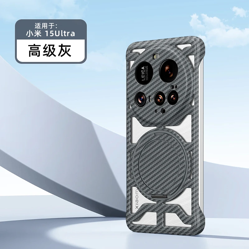 镂空散热360°旋转支架适用小米15Ultra碳纤维纹理手机壳夏天的防摔高级感14新款创意ultra男士女14pro手机套