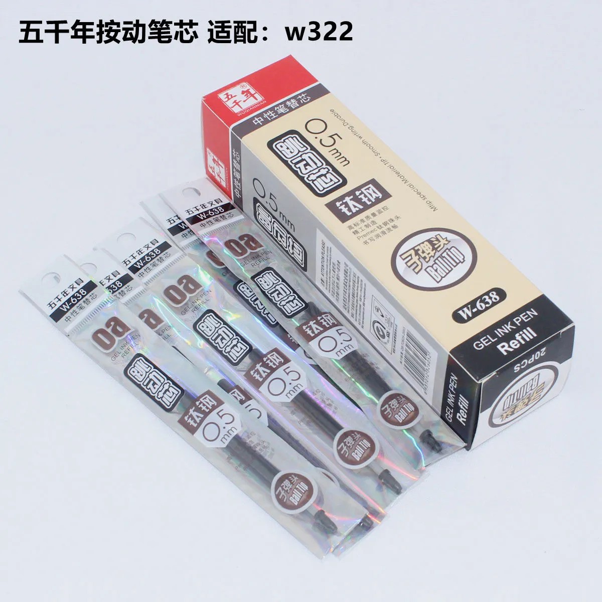 五千年0.5mm子弹头按动笔替芯黑色按动中性笔系列水性碳素笔芯638