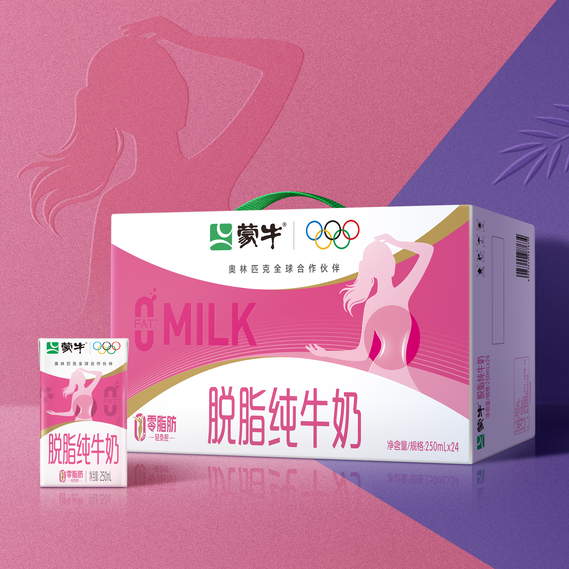 【热卖】蒙牛脱脂纯牛奶0脂肪早餐奶整箱250mL*24盒