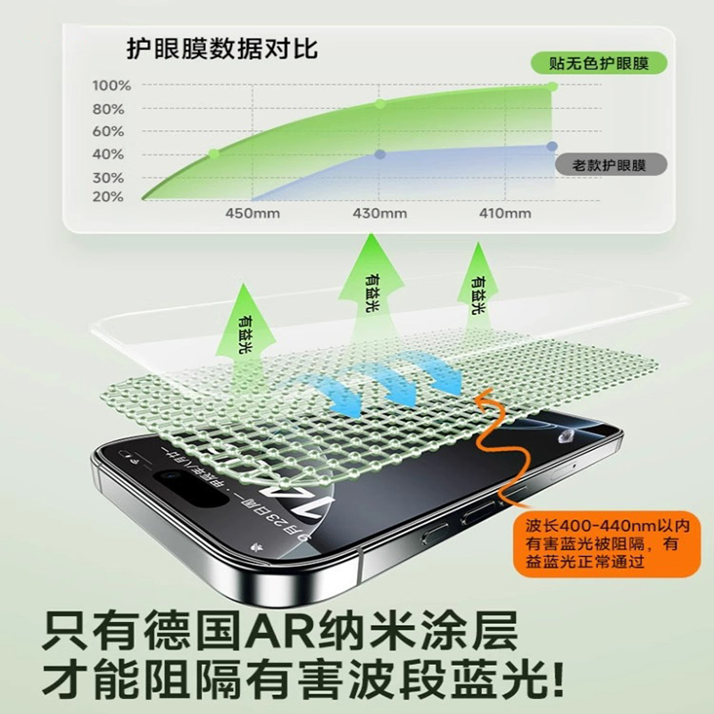【2025新款无色护眼】适用于苹果17钢化膜iPhone15promax手机Air膜ip15/14/13/12防窥全屏防摔防刮plus抗蓝光