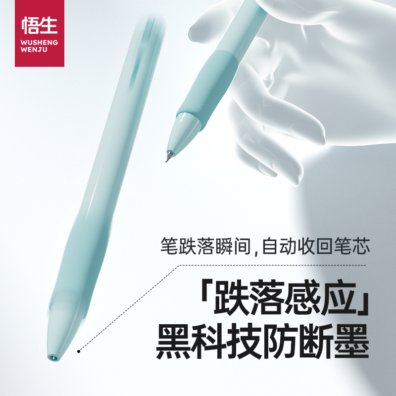 悟生灵动笔提笔出芯黑科技中性笔重力感应黑笔速干顺滑学生初中生专用刷题高颜值ins风水笔文具按动创意签字