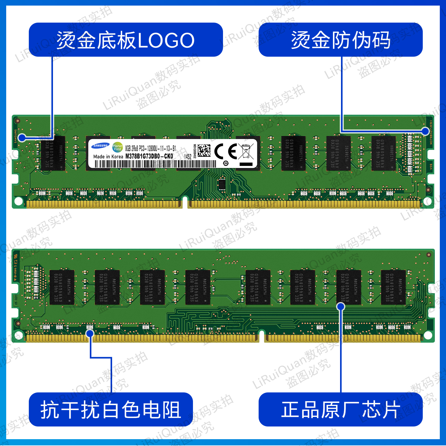 三星台式机内存条DDR3 1600 4G 8G PC3 12800U 电脑运行内存 原装