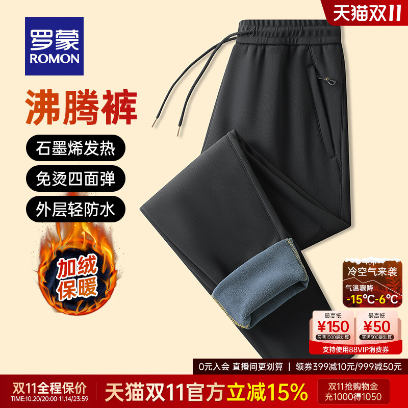 【奥粒绒沸腾裤】罗蒙男士加绒加厚休闲裤2025冬季新款保暖长裤男