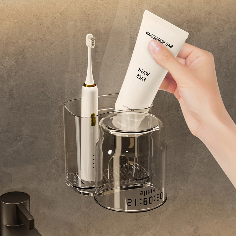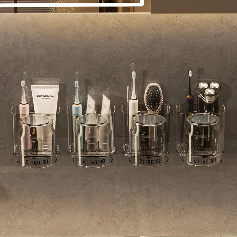 牙刷置物架免打孔漱口杯电动牙刷情侣壁挂式卫生间杯架牙膏洗漱