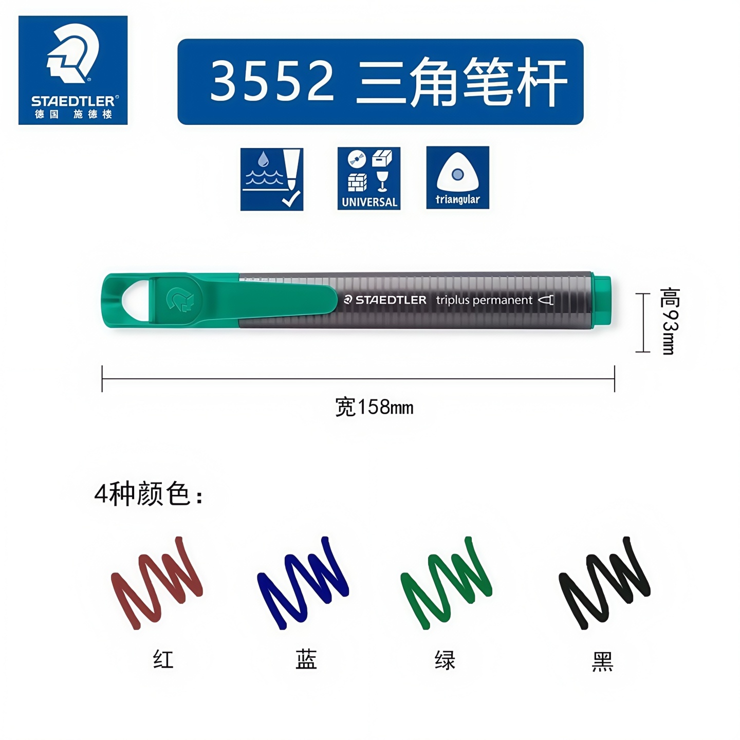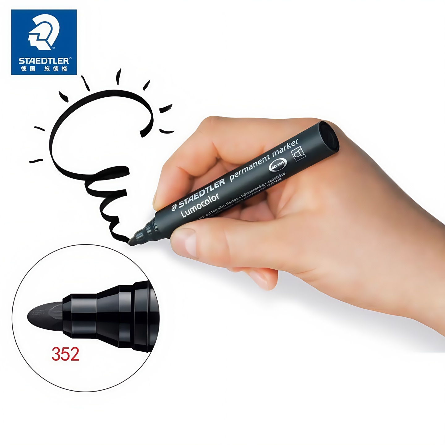 德国施德楼油性记号笔 350/352系列 防水不掉色脱帽防干马克笔油性笔粗圆头单头油性彩色斜方头笔耐用白板笔