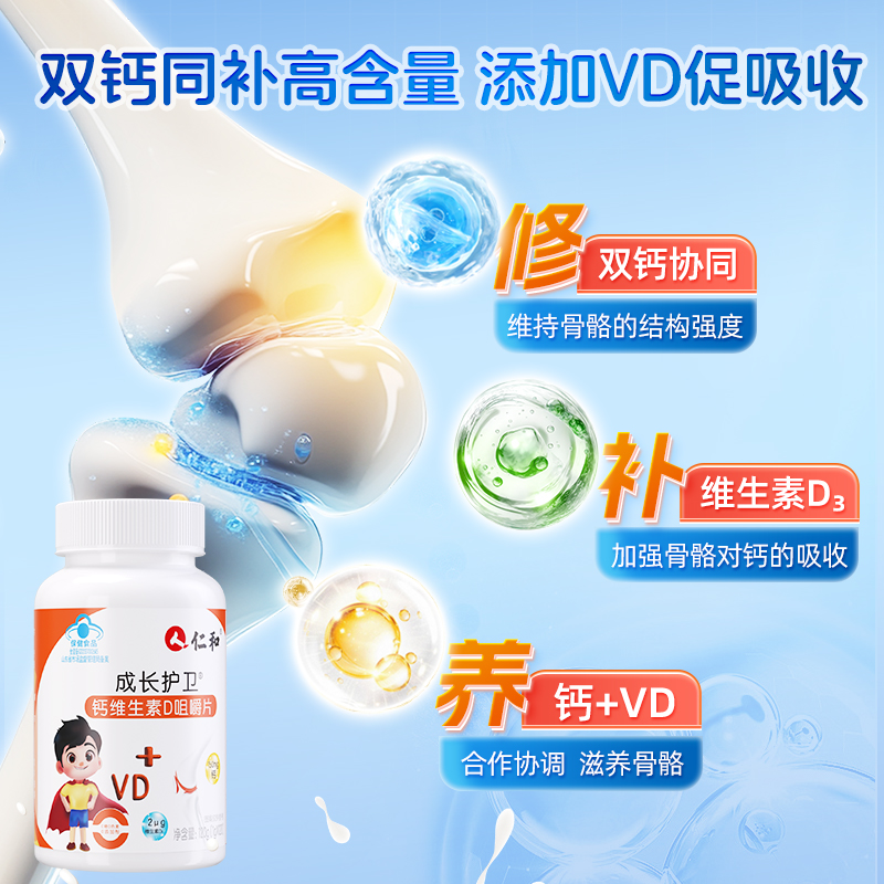 仁和维生素钙片儿童钙铁锌学生青少年长高补钙官方正品