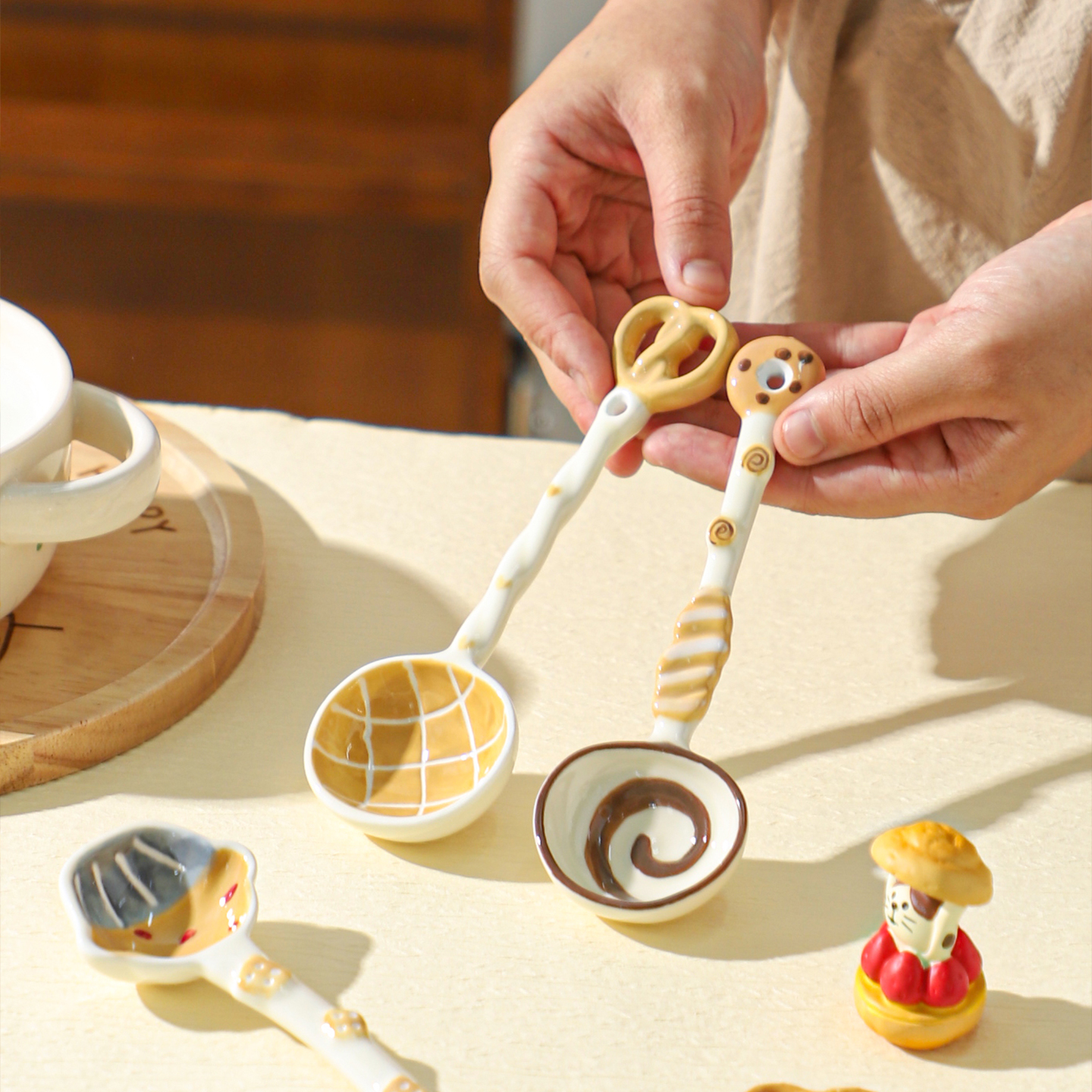 舍里可爱陶瓷勺家用创意长柄勺ins风搅拌勺甜品咖啡勺少女心调羹