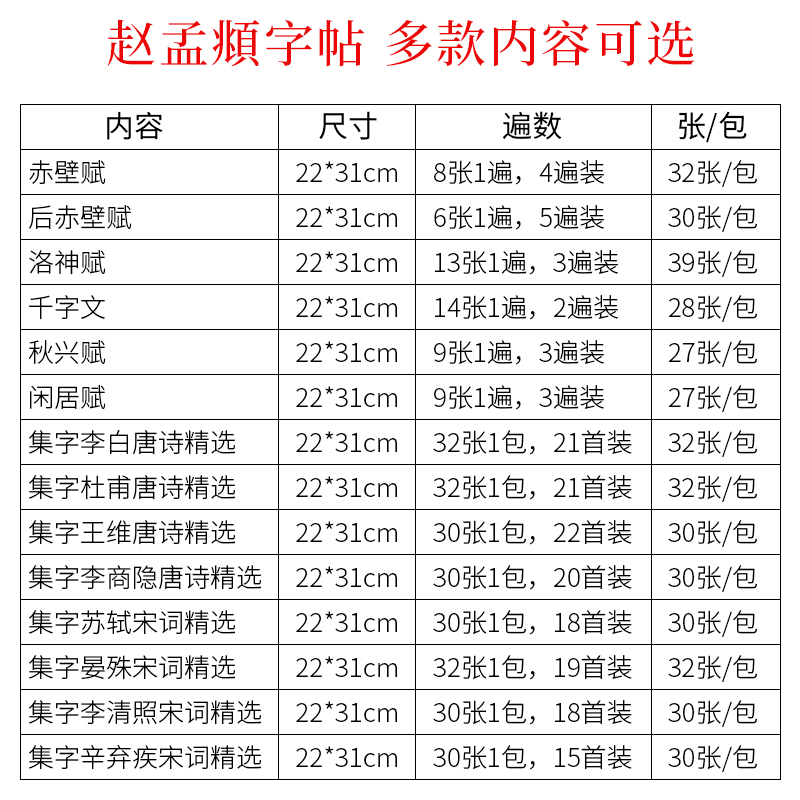 赵孟俯洛神赋千字文赤壁赋闲居赋行书毛笔字帖初学者小楷临摹入门套装赵孟頫原碑帖行书集字诗词宣纸书法描红